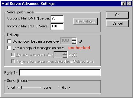 A large value for days may cause the mailbox to overflow. That covers all the defaults for Microsoft Internet Mail. |